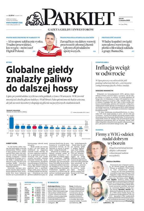 Lipiec przyniósł solidne zwyżki na wielu giełdach, w tym w Warszawie. WIG20 rósł mocniej niż choćby główne indeksy z Wall Street. Fala optymizmu nie będzie wieczna, ale jak na razie inwestorzy skupiają się głównie na pozytywnych wiadomościach. WIG20 zyskał w lipcu ponad 6 proc. Indeks naszych blue chips rósł szybciej niż choćby amerykański Nasdaq Composite i znalazł się najwyżej od lutego 2022 r.