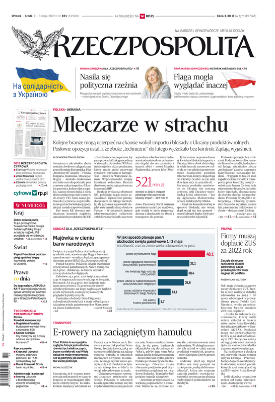 Święta 1 i 3 maja Polacy obchodzą raczej symbolicznie, wywieszając flagę z barwami narodowymi ? wynika z badania przeprowadzonego przez IBRiS dla ?Rzeczpospolitej?. Ponad 32 proc. Polaków ogląda transmisje uroczystości państwowych. Nieco mniej, bo 26,6 proc., deklaruje, że bierze udział w uroczystościach religijnych. Zaledwie 13,1 proc. czci święta, uczestnicząc w imprezach masowych, np. w biegach, festynach. Aż 30,4 proc. nie świętuje tego typu uroczystości.