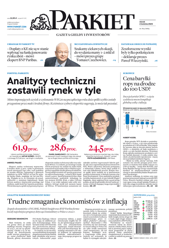 Mimo imponujących zwyżek w wykonaniu WIG20 na początku tego roku duże spółki szybko zostały przegonione przez małe i średnie firmy. Kwietniowe wybory ekspertów sugerują, że może tak pozostać. Eksperci analizy technicznej wypracowali średnio około 15 proc. zysku w pierwszych trzech miesiącach tego roku, czyli podobnie do wyniku sWIG80, najlepszego z głównych indeksów na GPW. WIG20 na tym tle wypada bardzo blado, znajdując się tuż pod kreską.