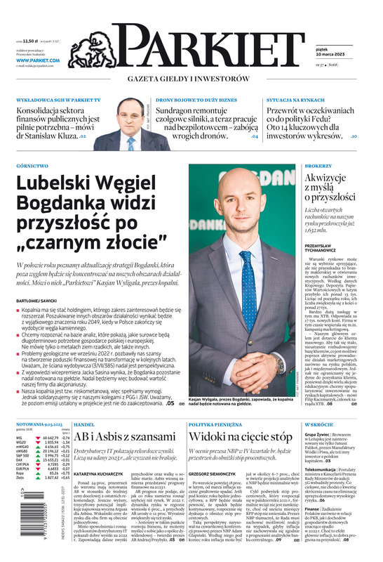 W połowie roku poznamy aktualizację strategii Bogdanki, która poza węglem będzie się koncentrować na nowych obszarach działalności. Mówi o nich ?Parkietowi? Kasjan Wyligała, prezes kopalni. Kopalnia ma się stać holdingiem, którego zakres zainteresowań będzie się rozszerzał. Poszukiwanie innych obszarów działalności wynikać będzie z wyjątkowego znaczenia roku 2049, kiedy w Polsce zakończy się wydobycie węgla kamiennego.
