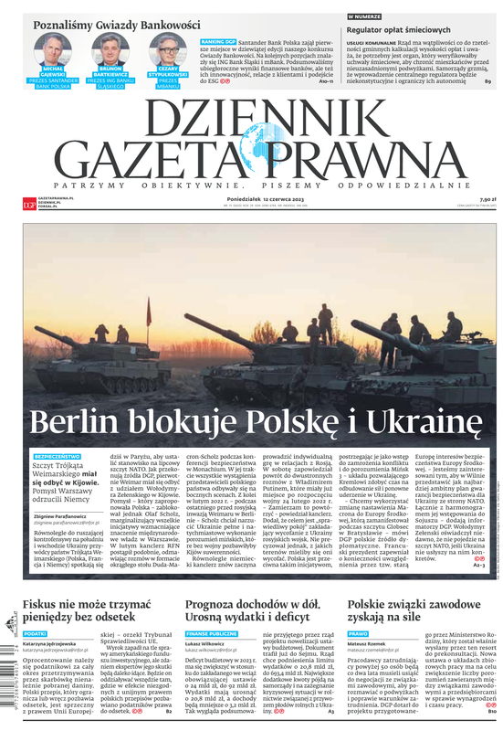 Równolegle do ruszającej ukraińskiej kontrofensywy przywódcy państw Trójkąta Weimarskiego spotkają się dziś w Paryżu, aby ustalić stanowisko na lipcowy szczyt NATO. Jak przekonują źródła ?DGP?, pierwotnie Weimar miał się odbyć z udziałem Wołodymyra Zełenskiego w Kijowie. Pomysł ? który zaproponowała Polska ? zablokował jednak Olaf Scholz marginalizujący wszystkie inicjatywy wzmacniające znaczenie międzynarodowe władz w Warszawie.