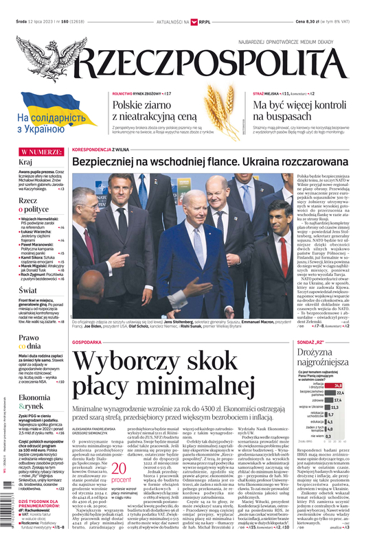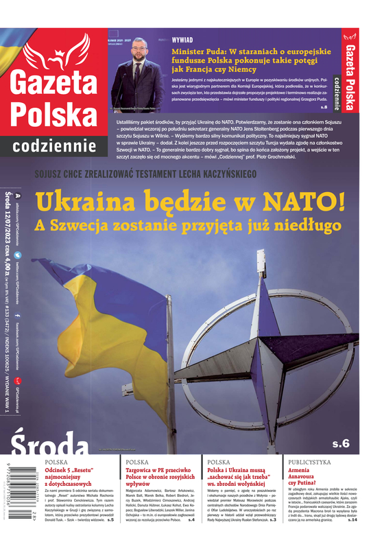 Ustaliliśmy pakiet środków, by przyjąć Ukrainę do NATO. Potwierdzamy, że zostanie ona członkiem Sojuszu ? powiedział wczoraj po południu szef NATO Jens Stoltenberg podczas pierwszego dnia szczytu sojuszu w Wilnie. ? Wyślemy bardzo silny komunikat polityczny. To najsilniejszy sygnał NATO w sprawie Ukrainy ? dodał. Przed rozpoczęciem szczytu Turcja wydała zgodę na członkostwo Szwecji w NATO.