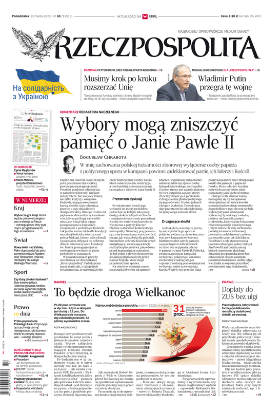 W imię zachowania polskiej tożsamości zbiorowej wyłączenie osoby papieża z politycznego sporu w kampanii powinni zadeklarować partie, ich liderzy i Kościół ? apeluje redaktor naczelny Bogusław Chrabota. ? Instrumentalne użycie pamięci o papieżu przez którąkolwiek ze strony bez wątpienia uderzy w pamięć o Janie Pawle II. Polityka, zwłaszcza podczas kampanii wyborczej, polaryzuje ? pisze.