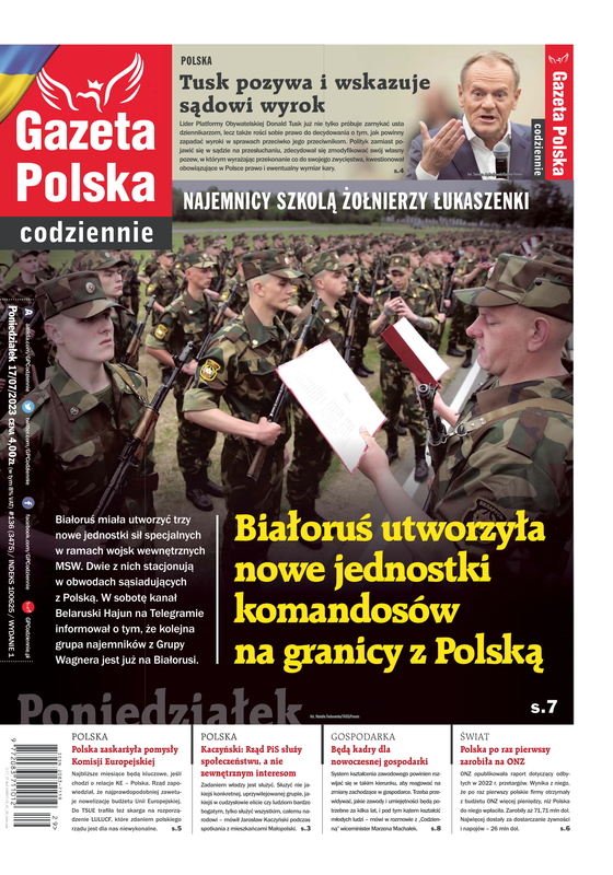 Białoruś miała utworzyć trzy nowe jednostki sił specjalnych w ramach wojsk wewnętrznych MSW. Dwie z nich stacjonują w obwodach sąsiadujących z Polską. Takie jednostki to elita białoruskich wojsk wzorowana na oddziałach KGB i GRU z czasów ZSRS. W sobotę kanał Belaruski Hajun na Telegramie informował zaś, że kolejna grupa najemników Wagnera jest już na Białorusi.