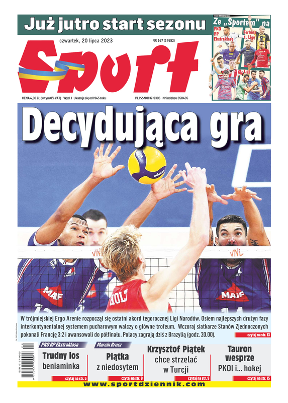 W trójmiejskiej Ergo Arenie rozpoczął się ostatni akord tegorocznej Ligi Narodów. Osiem najlepszych drużyn fazy interkontynentalnej systemem pucharowym walczy o główne trofeum. Wczoraj siatkarze Stanów Zjednoczonych pokonali Francję 3:2 i awansowali do półfinału. Polacy zagrają dziś z Brazylia.