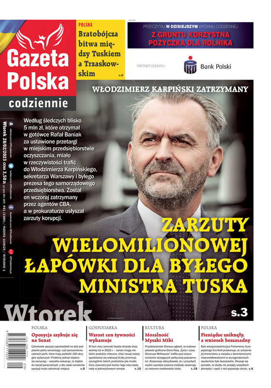 Według śledczych blisko 5 mln zł, jakie otrzymał w gotówce Rafał Baniak za ustawione przetargi w miejskim przedsiębiorstwie oczyszczania, miały w rzeczywistości trafić do Włodzimierza Karpińskiego, sekretarza Warszawy i byłego prezesa tego samorządowego przedsiębiorstwa. Został on wczoraj zatrzymany przez agentów CBA, w prokuraturze usłyszał zarzuty korupcji.