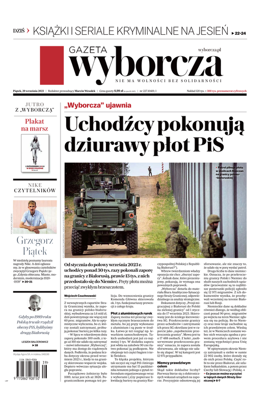Od stycznia do połowy września 2023 r. uchodźcy ponad 30 tys. razy pokonali zaporę na granicy z Białorusią, prawie 13 tys. z nich przedostało się do Niemiec. Pręty płotu można przeciąć zwykłym brzeszczotem - donosi wewnętrzny raport Straży Granicznej. Zapora wybudowana za 1,6 mld zł, jeszcze niedawno forsowała zdecydowana większość uchodźców, a dziś powstrzymuje nie więcej niż 60 proc.