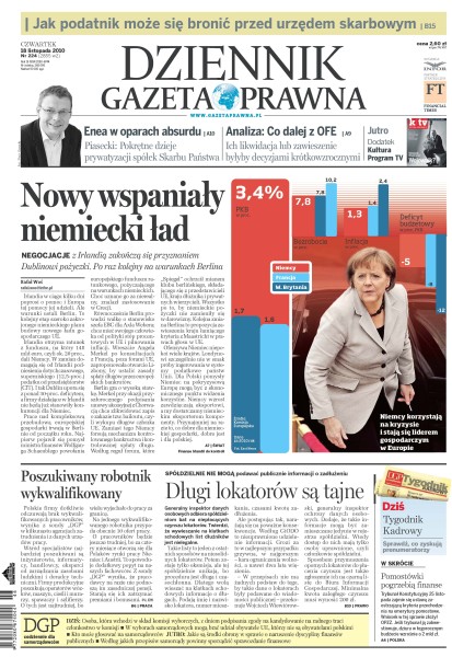 Jak podatnik może się bronić przed urzędem skarbowym; negocjacje z Irlandią zakończą się przyznaniem Dublinowi pożyczki po raz kolejny na warunkach Berlina; polskie firmy dotkliwie odczuwają brak wykwalifikowanych pracowników; Generalny Inspektor Ochrony Danych Osobowych odbiera spółdzielniom bat na niepłacących czynszu lokatorów; Trybunał Konstytucyjny 25 listopada zajmie się ustawą zaostrzającą kryteria przechodzenia na emerytury pomostowe; zagraniczni inwestorzy cenią Polskę za stabilność i fachowców; Polacy coraz częściej wybierają droższą kawę i herbatę; jak stwierdzić nabycie spadku i poświadczyć dziedziczenie.