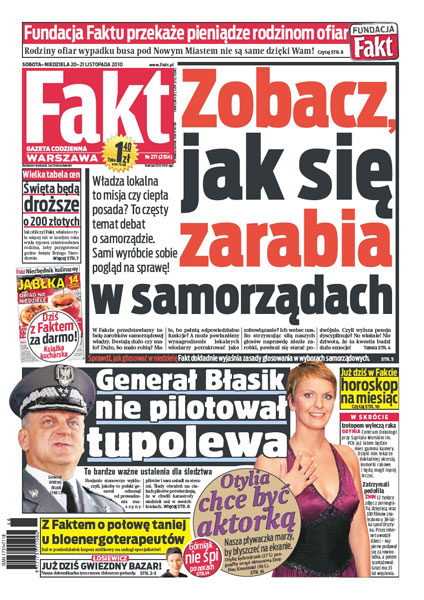 Jak się zarabia w samorządach; Urząd Regulacji Energetyki chce zmusić gazowego monopolistę do obniżki cen; kontrolerzy ze smoleńskiego lotniska zmieniali swoje zeznania; święta będą droższe o 200 zł; jak rzucić palenie; Otylia Jędrzejczak chce zostać aktorką; kolejny klub ekstraklasy włącza się do walki o Manuela Arboledę; Franciszek Smuda odzyskał wigor i obiecuje, że będzie lepiej; Ireneusz Jeleń już