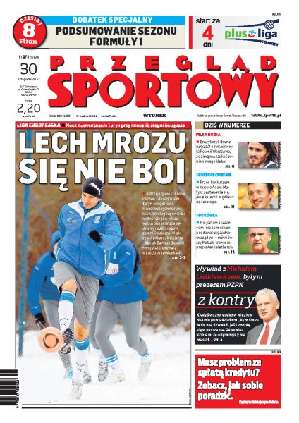 Lech Poznań przygotowuje się do arcytrudnego spotkania z Juventusem Turyn, czy zła pogoda pokrzyżuje plany Kolejorza; wywiad z Michałem Listkiewiczem, byłym prezesem PZPN; Polonia Warszawa ma dość słabej postawy swojego brazylijskiego zawodnika; Tomasz Kuszczak ma coraz mniejsze szanse na grę w bramce MU; jakie są wnioski trenerów polskich skoczków po słabym występie naszych reprezentantów w Kuusamo.