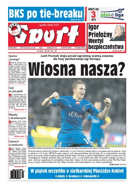 Lech Poznań staje przed ogromną szansą awansu do fazy pucharowej Ligi Europy, czy wielki Juventus Turyn pokrzyżuje plany Kolejorza; Tomasz Wałdoch od dziś nie pełni funkcji dyrektora sportowego Górnika Zabrze; prezes Jagiellonii Białystok sugeruje, by 16. kolejkę ekstraklasy rozgrywać wa wiosnę; Barcelona upokorzyła Real Madryt na oczach całego świata; Adam Małysz wystąpi dziś w zawodach Pucharu Świata w fińskim Kuopio.