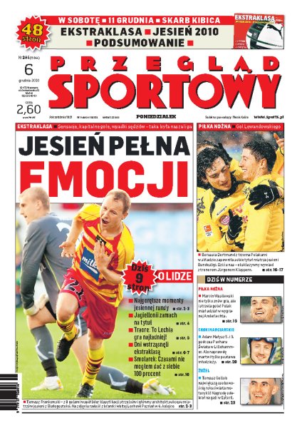 Najgorętsze momenty piłkarskiej rundy jesiennej; Jagiellonia mierzy w tytuł mistrzowski; która polska drużyna gra najładniejszą piłkę; którzy zawodnicy wstrząsnęli ligą; Marcin Wasilewski miał swój udział w ważnej wygranej Anderlechtu; Adam Małysz był 5. i 9. podczas zawodów Pucharu Świata w Lillehammer; Tomasz Gollob największą osobowością roku świata motocykli.