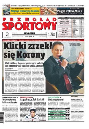Właściciel Korony Kielce wycofał się z finansowania klubu, rozmowa z właścicielem Polonii o Wdowczyku, Chelsea pokonana, Aquafresca podjął decyzję o grze w reprezentacji, Zagłębie Lubin na razie bez kary, Tomasz Rząsa wraca do kraju, wizyta u Małgorzaty Glinki, zaczynają się mistrzostwa Polski w pływaniu, wypadek samochodowy Macieja Żurawskiego.