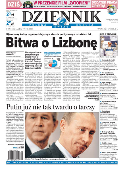 Kulisy sporu o ratyfikację traktatu lizbońskiego; nowa konserwatywna inicjatywa polityczna - Polska XXI; Warszawa-Berlin - nieformalne spotkanie szefów MSZ; zagadkowa śmierć drugiego zabójcy Krzysztofa Olewnika; szczyt w Soczi; nowa teoria kosmogenezy; przed rozdaniem Fryderyków; MySpace Music rusza latem.