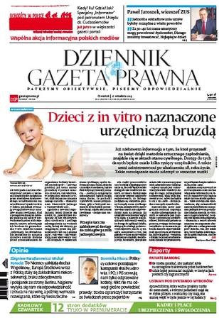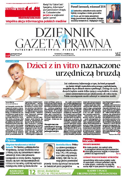 Już niebawem informacja o tym, że ktoś przyszedł na świat dzięki metodzie sztucznego zapłodnienia, znajdzie się w aktach stanu cywilnego; politycy celowo pomijają w kampanii służbę zdrowia; ile trzeba zarabiać, aby zasłużyć sobie na szczególne traktowanie przez bankowców; Niemcy zabijają ducha Wspólnoty skuteczniej niż kryzysy.