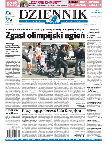 Kolejne protesty wobec olimpiady w Pekinie; bezrobocie w Polsce niższe o 30%; Jerzy Buzek kandydatem na szefa europarlamentu; zmiany finansowania świadczeń w NFZ; aresztowanie w kopalni Halemba; alarmujące dane - zakażenia w szpitalach; kryzys w sztabie Hillary Clinton; największe w historii manewry obronne w Izraelu; testy kompetencji przed gimnazjum; Biennale Sztuki Współczesnej w Berlinie; Fryderyki już rozdane.