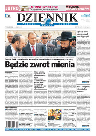 Rząd przygotowuje ustawę reprywatyzacyjną; europoseł musi oddać wyłudzone pieniądze; aneks do raportu Macierewicza - odpowiedzialnośc prezydenta; nadużycia Ludwika Dorna; kontrowersyjna kandydatura abp. Głodzia; reforma żłobków; zawieszona misja w Afganistanie; olimpiadzie grozi bojkot - manifestacje w USA; Internet nowej generacji; Rufus Wainwright w Warszawie; Zbigniew Boniek o korupcji w polskiej piłce; półfinał Ligi Mistrzów - awansowały Barcelona i Manchester United.