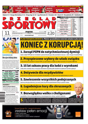 Plan walki z korupcją ministra sprawiedliwości oraz wywiad ze Zbigniewem Ćwiąkalskim; Michał Goliński walczy o wyjazd na finały Euro 2008; debiut Pawła Sibika; Piotr Reiss twarzą Lecha; Wojtek Wolski zakochany w Polsce; O’Neil Bell przed walką z Tomaszem Adamkiem; finał PLS - Skra coraz bliżej do zwycięstwa; Agnieszka Radwańska przegrała z Amelie Mauresmo; MŚ na krótkim basenie - zmienne szczęście Polaków.