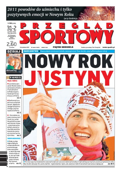 Justyna Kowalczyk rozpoczyna zmagania w prestiżowym Tour de Ski, czy Polka powtórzy wyczyn z zeszłego roku; Wisła Kraków zarobi 2,2 mln euro na sprzedaży Pawła i Piotra Brożków; Bartłomiej Grzelak może zostać piłkarzem Jagiellonii; słaby występ Adama Małysza podczas pierwszego konkursu 59. Turnieju Czterech Skoczni nie przekreśla jego szans na podium w tej imprezie; wywiad z Andrzejem Kadzińskim, prezesem Lecha Poznań.