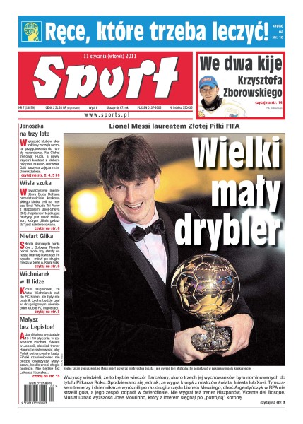 Lionel Messi został laureatem Złotej Piłki FIFA; Rafał Gikiewicz podpisał 4,5-letni kontrakt ze Śląskiem Wrocław i uczestniczył już w pierwszym treningu; najpóźniej dziś wyjaśni się, czy Marcin Robak skorzysta z oferty tureckiego klubu Konyaspor; hat trick Urugwajczyka wyeliminował Juventus z pościgu za Milanem; Kenny Dalglish do końca bieżącego sezonu będzie menedżerem Liverpoolu; jeżeli zawodniczki Aluprofu wygrają dziś ze Scavolini Pesaro i nie stracą dwóch setów, awansują do drugiej rundy Ligi Mistrzyń.