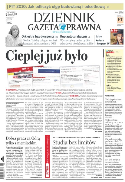 Jak odliczyć ulgę budowlaną i odsetkową; wystarczą trzy osoby, by diler zdecydował się dać sporą zniżkę na samochód; od marca 2011 r. pracujący więźniowie powinni otrzymywać wynagrodzenie równe co najmniej płacy minimalnej; kiedy ojciec adopcyjny może skorzystać z urlopu na dziecko; Rosjanie wysłali w świat fatalną dla polskiego wizerunku wersję wydarzeń w sprawie katastrofy smoleńskiej; choć Portugalia sprzedała wczoraj obligacje, nadal istnieje niebezpieczeństwo, że będzie musiała skorzystać z pomocy finansowej; rząd wycofał się z zakazu bezpłatnego studiowania na dowolnej liczbie kierunków.