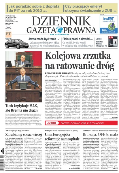 Dziennik Gazeta Prawna – codziennie obiektywne i rzetelne informacje z kraju i ze świata. Piszemy o tym, co dziś ważne i odpowiadamy na Wasze pytania – szczególnie te związane z obecnymi wyzwaniami tj. pandemia, praca zdalna. Na bieżąco wyjaśniamy zmieniające się przepisy. Wspieramy się wyjaśnieniami ministerstw i urzędów. Pomagamy unikać błędów i ostrzegamy, jakie są kary. Ponadto w każdy piątek specjalne magazynowe wydanie Dziennika Gazety Prawnej w całości z tekstami społeczno-ekonomicznymi.