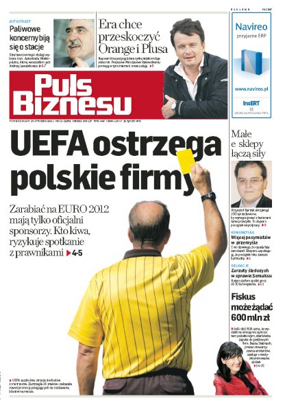 UEFA ostrzega polskie firmy – zarabiać na EURO 2012 mają tylko oficjalni sponsorzy, inne przedsiębiorstwa osiągające zyski z tej imprezy narażone są na wysokie kary; coraz więcej polskich firm nie wywiązuje się z zamówień; Krotoski-Cichy kupił 100 proc. udziałów Euro Centrum Tadeusz; byłym zarządzającym Semaksu grozi do 10 lat pozbawienia wolności; dziś Naczelny Sąd Administracyjny rozstrzygnie, czy wydatki na emisje akcji są kosztem podatkowym.