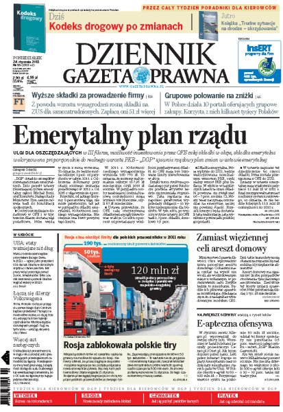 Dziennik Gazeta Prawna – codziennie obiektywne i rzetelne informacje z kraju i ze świata. Piszemy o tym, co dziś ważne i odpowiadamy na Wasze pytania – szczególnie te związane z obecnymi wyzwaniami tj. pandemia, praca zdalna. Na bieżąco wyjaśniamy zmieniające się przepisy. Wspieramy się wyjaśnieniami ministerstw i urzędów. Pomagamy unikać błędów i ostrzegamy, jakie są kary. Ponadto w każdy piątek specjalne magazynowe wydanie Dziennika Gazety Prawnej w całości z tekstami społeczno-ekonomicznymi.
