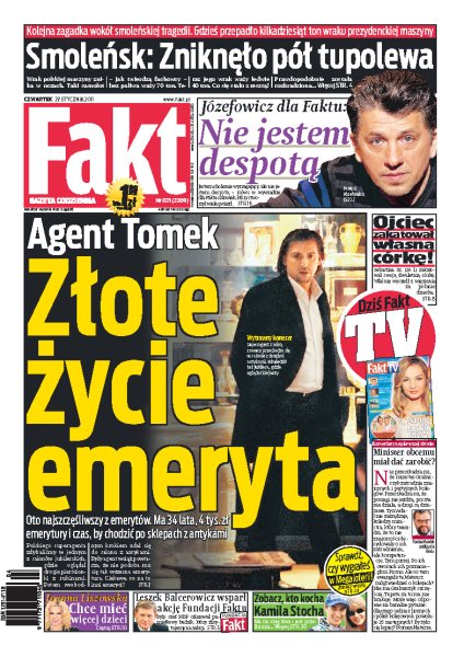 Kolejna zagadka wokół smoleńskiej tragedii, gdzieś przepadło kilkadziesiąt ton wraku prezydenckiego tupolewa; wywiad z Januszem Józefowiczem; zobacz, jak wygląda życie słynnego agenta Tomka na emeryturze; Joanna Liszowska zapowiada, że chce mieć więcej dzieci; jak wygląda kobieta, która kocha Kamila Stocha; człowiek, który zaatakował swoje dwuletnie dziecko, właśnie został wypuszczony z więzienia.