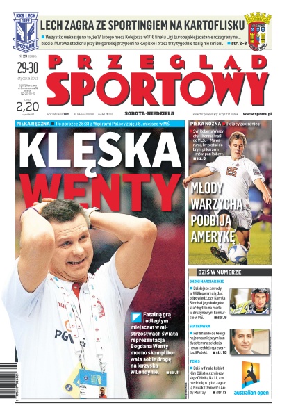 Klęska Bogdana Wenty w meczu z Węgrami; syn Roberta Warzechy - Konrad podbija Amerykę; Ferdinando de Giorgi najpoważniejszym kandydatem na selekcjonera męskiej reprezentacji Polski w siatkówkę; finał kobiet Australian Open; dzisiejsze zawody w Willingen pokażą, czy Kamil Stoch i jego koledzy są w stanie zdobyć medal.