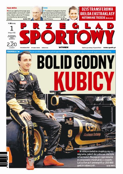 Wczoraj w Walencji Lotus Renault, team Roberta Kubicy, zaprezentował tegoroczny bolid, w którym będzie się ścigał polski kierowca; dziś początek pierwszego zgrupowania drużyny Franciszka Smudy w 2011 roku; po udanym występie w Australian Open Agnieszka Radwańska wróciła do pierwszej 10. rankingu WTA; trzecie notowanie piłkarskiej giełdy transferowej – zima 2010/2011; Marcin Gortat spisuje się coraz lepiej na parkietach NBA.