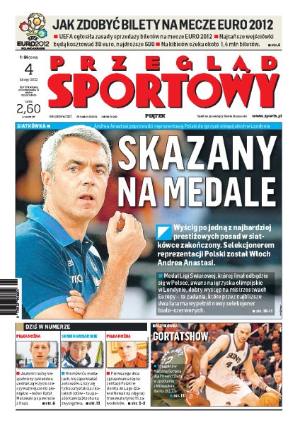 Wyścig po jedną z najbardziej prestiżowych posad w siatkówce zakończony, trenerem polskiej reprezentacji został Andrea Anastasi; Marcin Gortat spisuje się wyśmienicie na parkietach NBA; jak zdobyć wejściówki na mecze Euro 2012; Kamil Stoch ma swoje własne sposoby na odnoszenie sportowych sukcesów; wywiad z Rafałem Murawskim; jak upłynął pierwszy dzień zgrupowania kadry Franciszka Smudy w Portugalii.