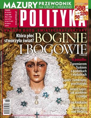 Temat numeru: kult bogini-matki; Donald Tusk jest liberałem jedynie w 64% - rozmowa z premierem o gospodarce; walka o mieszkania w Wałbrzychu; jaki będzie los polskiej lewicy; koniec walki z niekonstytucyjnym paragrafem kodeksu etyki lekarskiej; raport o leczeniu psychiatrycznym w Polsce; czy czeka nas globalny kryzys finansowy; kruchy spokój na Kaukazie; rozmowa z Januszem Gajosem; majowe święto w PRL-u; poradnik - nowości kosmetologii i medycyny estetycznej; miłośnicy Doliny Biebrzy.