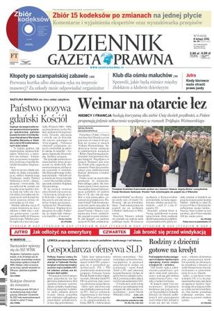 Dziennik Gazeta Prawna – codziennie obiektywne i rzetelne informacje z kraju i ze świata. Piszemy o tym, co dziś ważne i odpowiadamy na Wasze pytania – szczególnie te związane z obecnymi wyzwaniami tj. pandemia, praca zdalna. Na bieżąco wyjaśniamy zmieniające się przepisy. Wspieramy się wyjaśnieniami ministerstw i urzędów. Pomagamy unikać błędów i ostrzegamy, jakie są kary. Ponadto w każdy piątek specjalne magazynowe wydanie Dziennika Gazety Prawnej w całości z tekstami społeczno-ekonomicznymi.