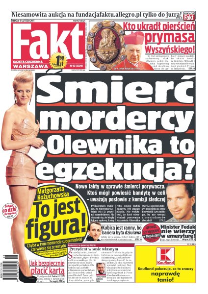 Czy śmierć mordercy Olewnika to egzekucja; Jolanta Fedak przyznaje, że nie odkłada pieniędzy i chce żyć z wynajmu mieszkania; Leszek Balcerowicz przedstawia swoją wizję reform; zniknęła cenna pamiątka po Stefanie Wyszyńskim - za jej odnalezienie wyznaczono 5000 zł nagrody; Alicja Bachleda-Curuś chce spolszczyć imię synka; przyjaciele namawiają młodą Kwaśniewską aby założyła w końcu rodzinę; dlaczego Skoda Roberta Kubicy została przebita barierą niczym szpadą.