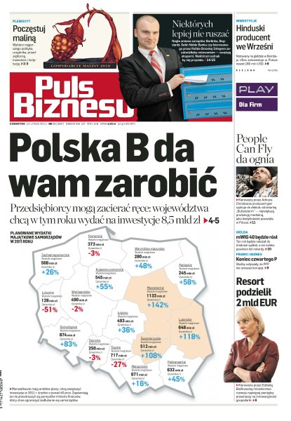 Gospodarcze Maliny 2010 - wybierz najgorszego polityka, urzędnika, przedsiębiorcę, inwestora i instytucję; nagła zmiana zarządów Barlinka, Bogdanki, Getin Noble Banku Integera zaszkodziłaby notowaniom; przedsiębiorcy mogą zacierać ręce: województwa chcą w tym roku wydać na inwestycje 8,5 mld zł; ten rok będzie należał do średnich spółek, a ich indeks powinien bić rekordy; kierowane przez Elżbietę Bieńkowską ministerstwo rozwoju najwięcej pieniędzy przeznaczy na innowacyjność gospodarki.