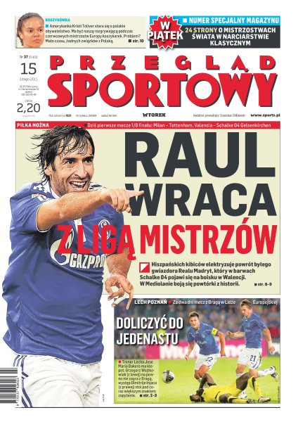 Hiszpańskich kibiców elektryzuje powrót byłego gwiazdora Realu Madryt, który w barwach Schalke 04 pojawi się na boisku w Walencji; Vuk Sotirović został wczoraj karnie usunięty ze zgrupowania na Cyprze; Robin Van Persie strzelił dziewięć goli w ostatnich pięciu meczach, teraz ma poprowadzić Arsenal do wygranej z Barceloną; Kristi Toliver stara się o polskie obywatelstwo.