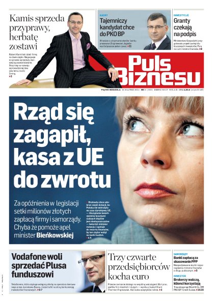 Robert Kamiński dzieli firmę Kamis na dwie części - negocjacje w sprawie sprzedaży starszej są zaawansowane; w walce o utrzymanie sterów banku PKO BP prezesowi Zbigniewowi Jagielle wyrósł jeszcze jeden rywal; Ministerstwo Gospodarki przygotowało projekt zachęt dla kluczowych inwestorów; za opóźnienia w legislacji setki milionów złotych zapłacą firmy i samorządy; przeciw zamianie złotego na wspólną walutę jest 19,4 proc. szefów firm średnich i dużych — wynika z badań Grant Thornton Frąckowiak.