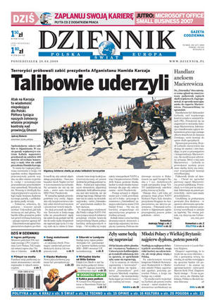 Zamach na prezydenta Afganistanu Hamida Karzaja; czy WSI próbują skompromitować komisję weryfikacyjną; Lech Wałęsa wygwizdany podczas ingresu abpa Głodzia; Polska szuka nowych sojuszników za granicą; policja rozbiła gang mokotowski; Microsoft zaprezentował Live Mesh; rewolucja w leczeniu próchnicy; nowy album Madonny; Shira Geffen o filmie „Meduzy”; prawo ograniczające budowę dużych sklepów uderza głównie w drobnych krajowych kupców; czy drogowcy z Chin będą mogli pracować w Polsce; Słowacja o krok od wprowadzenia Euro.