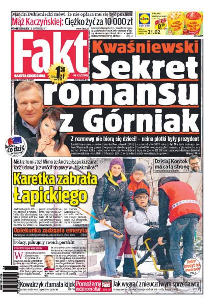 Sekrety domniemanego romansu Aleksandra Kwaśniewskiego z Edytą Górniak; mimo że Andrzej Łapicki złamał kość udową, to już wrócił do pracy na planie serialu „M jak miłość”; jak wygrać spór z nieuczciwym sprzedawcą; opiekunka zadźgała nożem starszego mężczyznę, bo ten nie chciał oddać jej swojej emerytury; Justyna Kowalczyk miała strasznego pecha podczas zawodów Pucharu Świata.