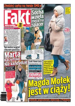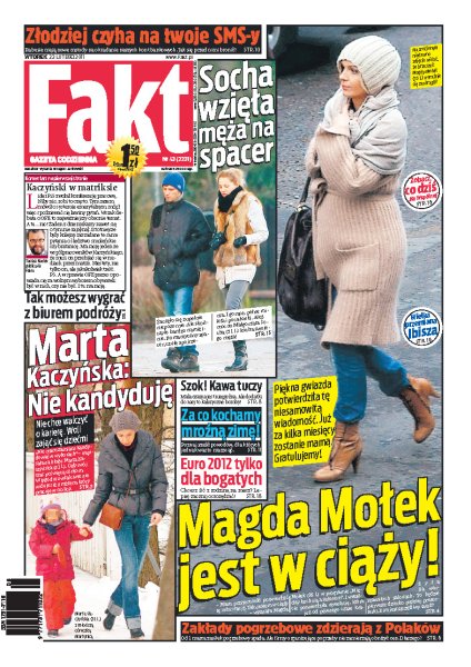Polscy rabusie mają nowe sposoby na okradanie naszych kont bankowych, zobacz, jak skutecznie się przed nimi bronić; Marta Kaczyńska nie chce walczyć o karierę polityczną i oświadcza, że woli zająć się swoją rodziną; Euro 2012 będzie zabawą tylko dla bogatych Polaków; Magda Mołek potwierdziła niesamowitą wiadomość, piękna gwiazda jest w ciąży; zakłady pogrzebowe bez skrupułów zdzierają z nas duże pieniądze.