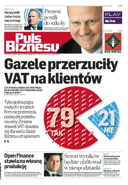 Tylko jedna piąta małych i średnich firm nie przeniosła podwyżki podatku na ceny za towary i usługi; Nowej Soli koło nosa może przejść świetny projekt, a do tego nie wiadomo, kto jest za to winny; minister skarbu ma pomysł na zwiększenie wartości państwowych firm; Atlas świętuje swoje 20-lecie bez dwóch udziałowców; Bruksela dała impuls podlaskim gazelom biznesu.