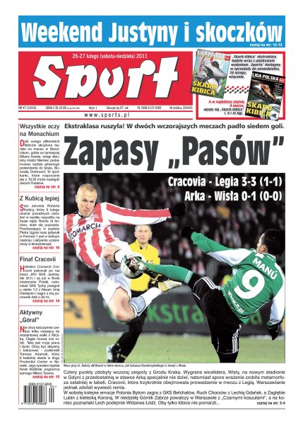 Ekstraklasa ruszyła - dwa mecze i aż siedem goli; z Kubicą coraz lepiej; los Bakero i falstart Lecha; trzy burzliwe początki roku Górnika Zabrze; ławki rezerwowych będą pod nadzorem arbitrów; Bayern kontra Borussia - kto będzie się cieszył po meczu; Krakowianki nie powtórzą sukcesu z poprzedniego sezonu; dwunastka Tauronu przygotowana do gry na najwyższym poziomie; Adam Małysz będzie kibicował Justynie Kowalczyk, a o skokach nie myśli; Justyna Kowalczyk boi się wszystkich; Kevin McBride będzie dobrą rozgrzewką dla Adamka przed walką z jednym z braci Kliczków.