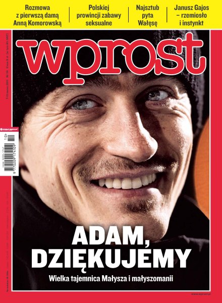 Po wielu latach sukcesów na skoczniach całego świata Adam Małysz podjął decyzję o zakończeniu kariery sportowej; rozmowa z pierwszą damą RP, Anną Komorowską; jak wyglądają zabawy seksualne mieszkańców małych miejscowości; wywiad z Lechem Wałęsą; Janusz Gajos – mężczyzna po przejściach; kim tak naprawdę był Arkadiusz Protasiuk, pilot, który 10 kwietnia 2010 roku siedział za sterami Tu-154M.