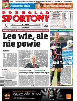 Witold Woyda nie żyje; Beenhakker podobno już nie ma żadnych dylematów, ale piłkarzy walczących o miejsce w kadrze trzyma w niepewności; święto w Madrycie i w Wolfsburgu - Real obronił mistrzostwo Hiszpanii, Bayern uczcił mistrzostwo 1. Bundesligi piwną kąpielą; wywiad z Michałem Winiarskim; Andrzej Gołota chciałby walczyć o pas WBC z Samuelem Peterem.