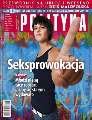 Śledztwo Polityki: prawnicy ze znanej sopockiej kancelarii, prywatnie – przyjaciele prezydenta, byli właścicielami największej w Polsce firmy handlującej długami placówek służby zdrowia. Raport: rewolucja seksualna polskiej młodzieży wcale się nie dokonała. Ponadto: absurdalne przepisy utrudniają prowadzenie przetargów; skąd się biorą skrajni nacjonaliści; błędne koło w polskim górnictwie; jak uniknąć pułapek bankowych promocji; Birmę nękają dwa nieszczęścia – dyktatura wojskowa i cyklony; historyczna relacja ze strajku w Stoczni Gdańskiej; jak naprawdę wygląda prywatyzacja szpitala; dlaczego coraz więcej zawodów w Polsce zamyka się w szczelne korporacje; świadkowie boją się zeznawać w procesach; posiadanie własnego wierzchowca jest coraz bardziej modne i popularne.