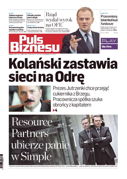 Prezes Jutrzenki zastawia sieci na Odrę; Resource Partners ubierze panie w Simple; rząd wydał wyrok na OFE; sądowa wygrana importera Seata; dolewka biopaliw wpadła w poślizg; Funky Koval trafi do kina; przeceniony Istambuł kusi fundusze.