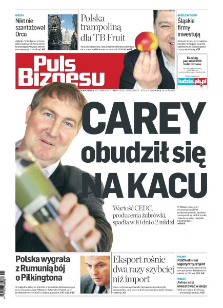 Wartość CEDC, producenta żubrówki, jednej z najpopularniejszych polskich wódek spadła w 10 dni o 2 mld zł; eksport w styczniu wzmocnił znacząco polski PKB; TB Fruit przejmuje, inwestuje i szykuje debiut na GPW; logistyczny projekt PERN zostanie odmrożony; Pilkington zbuduje nowy zakład wart 450 mln zł; polscy bogacze wzbogacili się na światowym kryzysie.