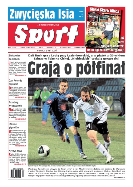 Ruch Chorzów czekają gorące dni - dziś mecz z Legią Warszawa, a w piątek z Górnikiem Zabrze; Józef Wojciechowski zdecydował, że Piotr Stokowiec poprowadzi Polonię do końca sezonu; w czwartek zostanie ogłoszony przetarg na budowę nowego stadionu w Zabrzu; Bayern Monachium gra dziś rewanżowy mecz z Interem Mediolan; siatkarki BKS Aluprofu Bielsko-Biała od miesiąca nie wygrały meczu w lidze.