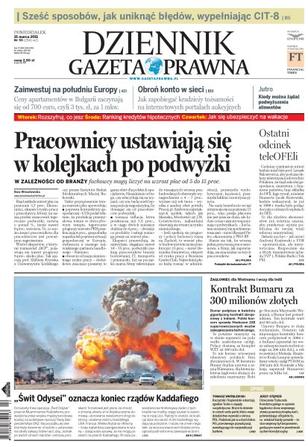 Pracownicy ustawiają się w kolejkach po podwyżki, fachowcy mogą liczyć na wzrost płac od 5 do 15 proc.; jak zapobiegać kradzieży tożsamości na internetowych portalach aukcyjnych; inwestycje w nieruchomości są najbardziej opłacalne w Europie południowej; sześć sposobów, jak uniknąć błędów, wypełniając CIT-8; od soboty trwa operacja „Świt Odysei” przeciw Muammarowi Kaddafiemu, prowadzona przez wojska międzynarodowej koalicji na podstawie rezolucji Rady Bezpieczeństwa ONZ.